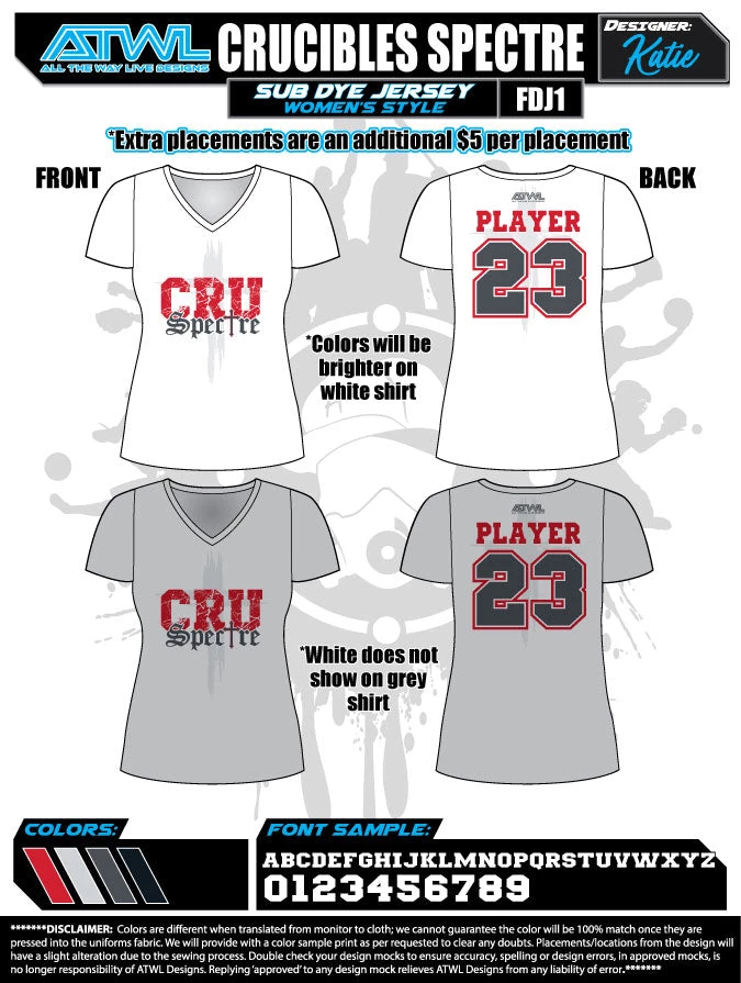 100% Polyester White or Grey Sublimated V-Neck Short Sleeve Women’s Shirt