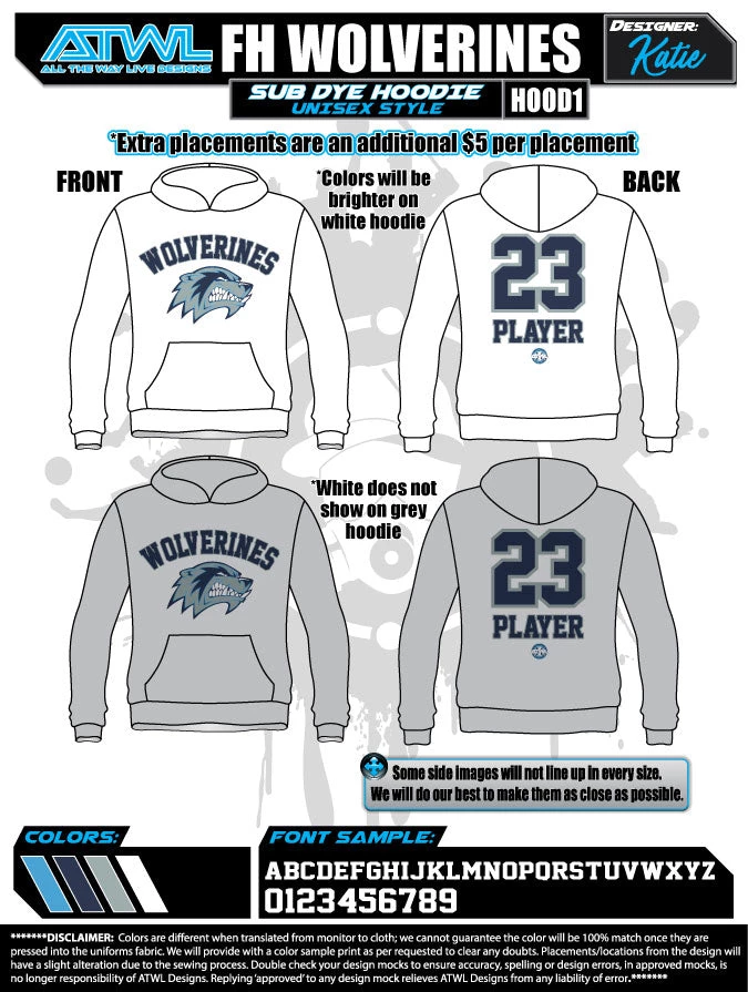 Fabric:Â 10 oz. / 100% Spun Polyester Fleece